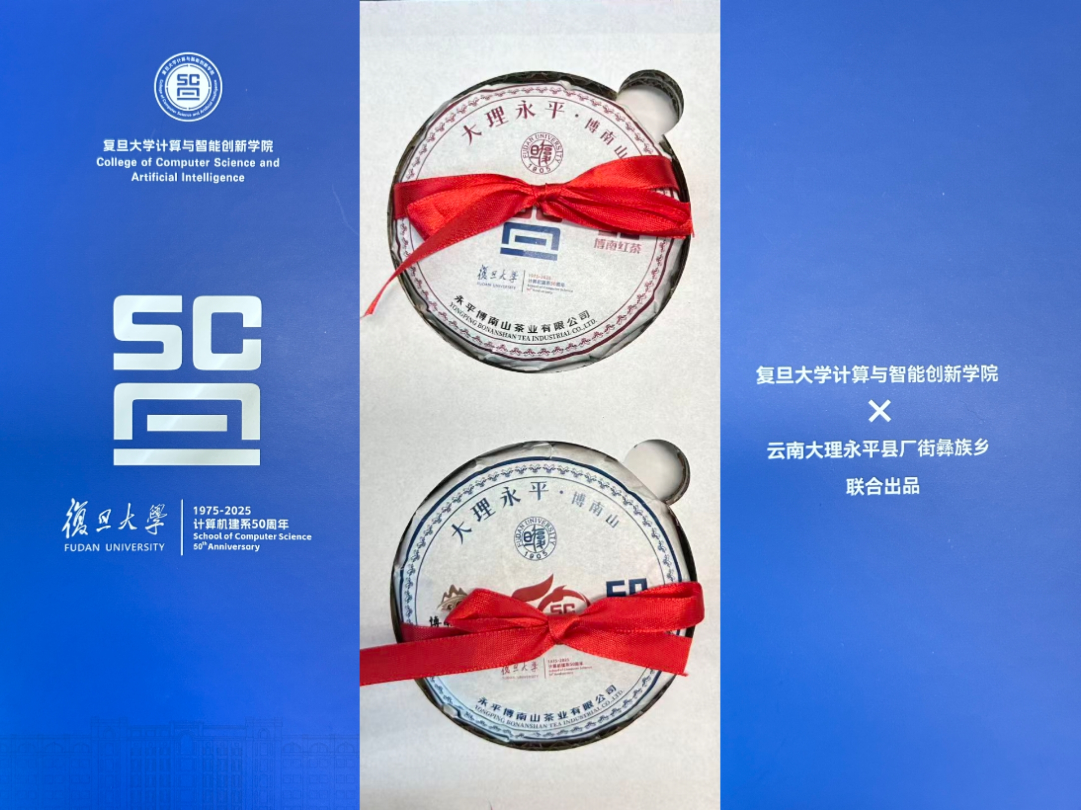520元 我爱你复旦计算机 精美明信片一张+50周年纪念徽章+50周年纪念茶饼